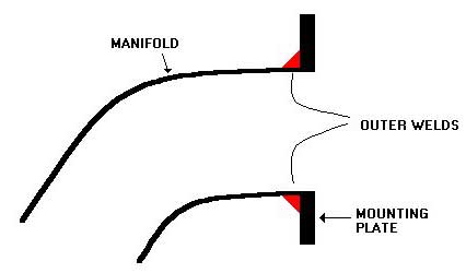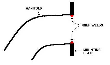 You will be left with 4 rather large scary looking holes in the top of each branch in you manifold, now you need to find a good welder!! Get these holes welded up and while you are at it get the branches welded to the mounting plate around the outside.